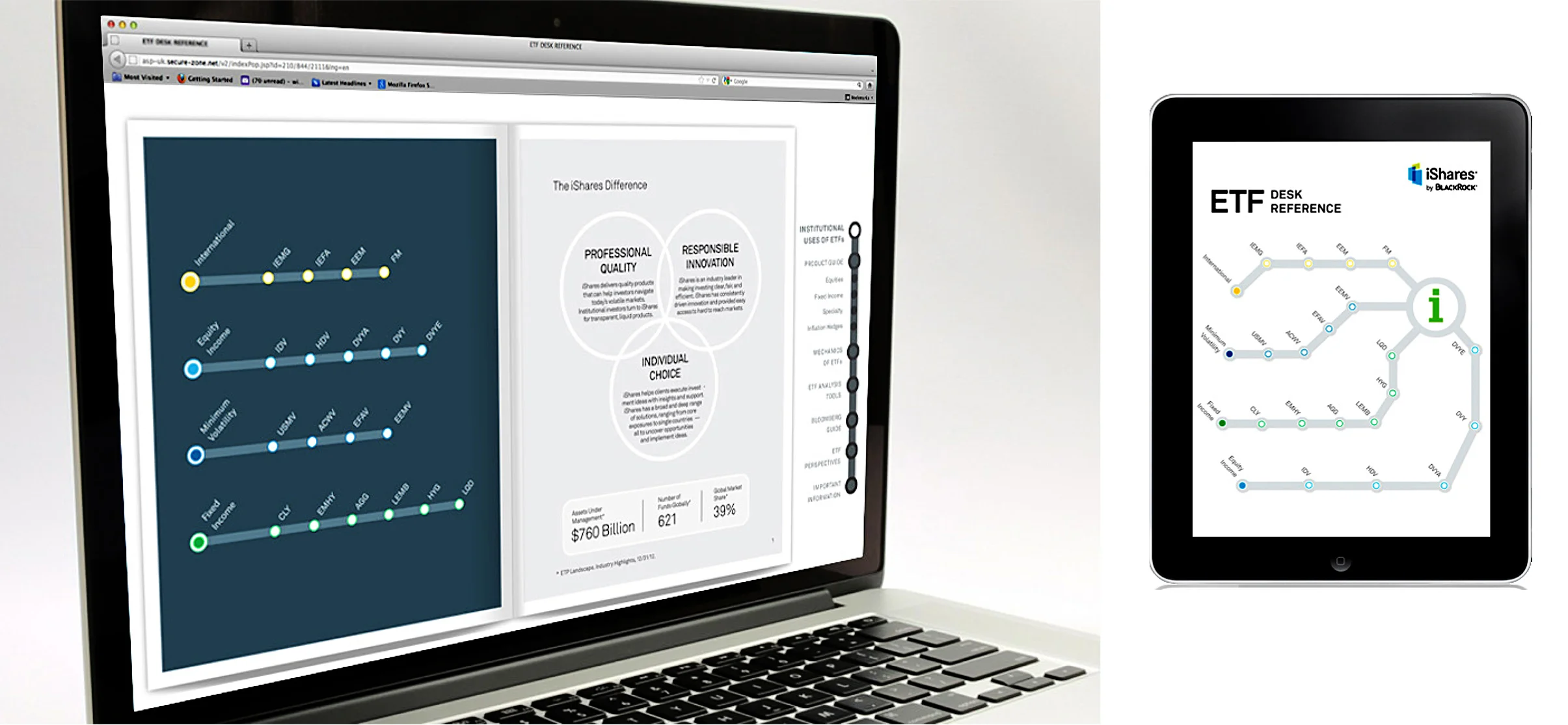 The Desk Reference is an annual direct mail and digital campaign for BlackRock and iShares. It is designed to be both a product reference guide as well as a driver of new business. The Desk Reference campaign has historically had some of the highest response rates amongst all campaigns developed by BlackRock or iShares. It has been one of the biggest marketing drivers of new sales leads for all of iShares professional investor client channels.